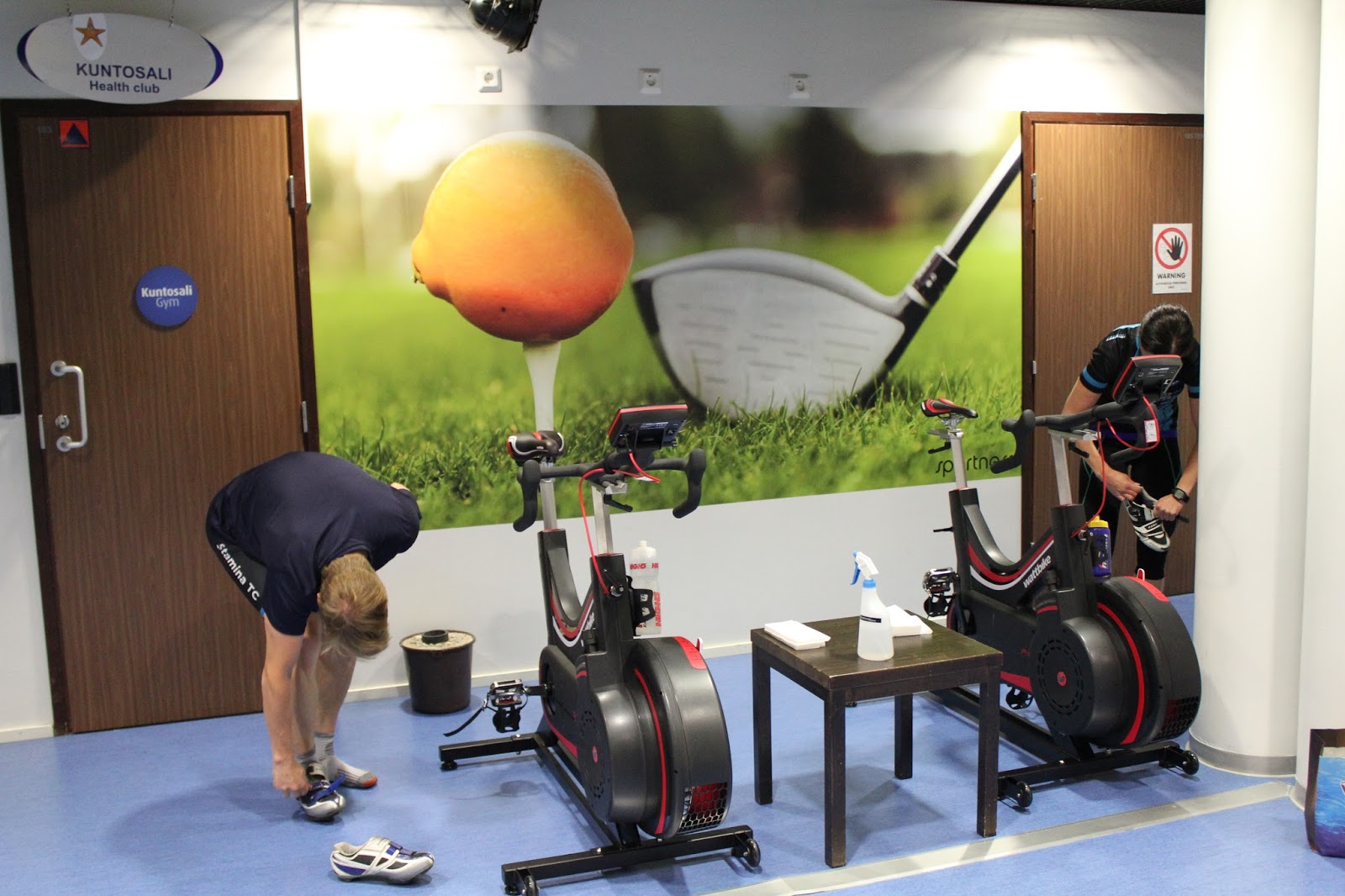 Aamupalan jälkeen oli vapaata ohjelmaa muutama tunti ennen minun vetämää juoksutreeniä. Tässä välissä kävimme Antti Leväsen kanssa korjaamassa parin seuralaisen ajoasentoa, sillä Tahkolla sattui olemaan pari watbikea. Samalla katsoimme ja korjasimme pyöritys tekniikkaa, joka oli hyvällä mallilla jo valmiiksi.